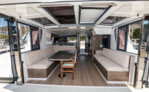 The defining feature of a Bali 4.2 Catamaran Charter Göcek is the revolutionary “Bali Open Space” concept. Unlike traditional catamarans, the EF1303 removes the boundaries between the saloon and the cockpit, creating a singular, expansive living zone.