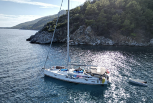- High-Performance Sail Plan: The yacht features a furling genoa and a battened mainsail, allowing for high-speed sailing even in the light afternoon breezes typical of the Turkish Riviera.