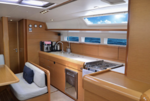 - The Gourmet Galley: A long, linear galley equipped with a double-burner stove, oven, and expansive refrigeration ensures your Sailing Yacht Charter Bodrum includes a first-class culinary experience.