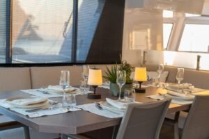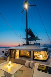 • Aesthetic Tone: Consistent with the Aquinox “dark editorial” tone, the crisp lines and minimalist exterior ensure this yacht stands out as a premier Bali 4.6 Catamaran Charter Fethiye in every bay.