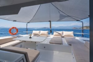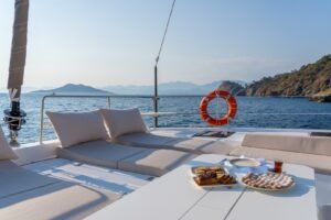 • Flybridge Relaxation: The upper deck lounge provides a panoramic retreat, perfect for hosting sunset cocktails, a hallmark of the Bali 4.6 Catamaran Charter Fethiye experience.