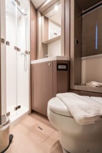 • Modern Appliances: The interior is equipped with a dishwasher, microwave, oven, and washing machine, providing the ultimate “floating hotel” service.