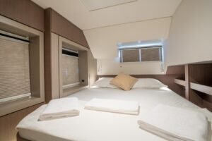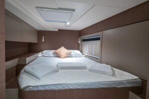The AY1404 is engineered to accommodate 10 guests in a rare and highly functional layout that prioritizes guest privacy and architectural precision for a Bali 4.6 Catamaran Charter Fethiye.