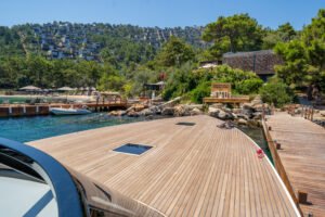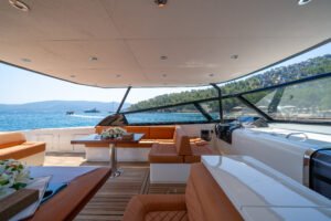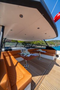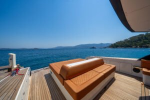 The PS1902 is defined by its striking silhouette and generous outdoor living spaces. The architecture of this Exclusive Motor Yacht Bodrum prioritizes a “social layout,” featuring an inviting dining area and an expansive deck designed for sharing unforgettable moments under the Aegean sun.