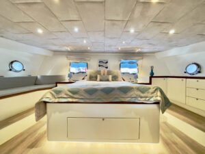• Powered Extras: For the thrill-seeker, the yacht offers an optional “Powered Water Toys” package including Water Ski, Wake Board, Ringo, and a Banana for 2 Pax.
